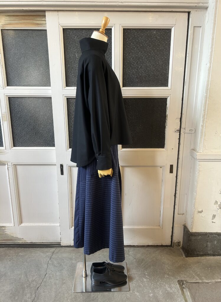 暖かみのある生地感で着こなし次第で長い期間着用可能。ゆったりめの身幅、前後差ありのトップス丈設定で一枚でさらりと着用しやすいアイテム。