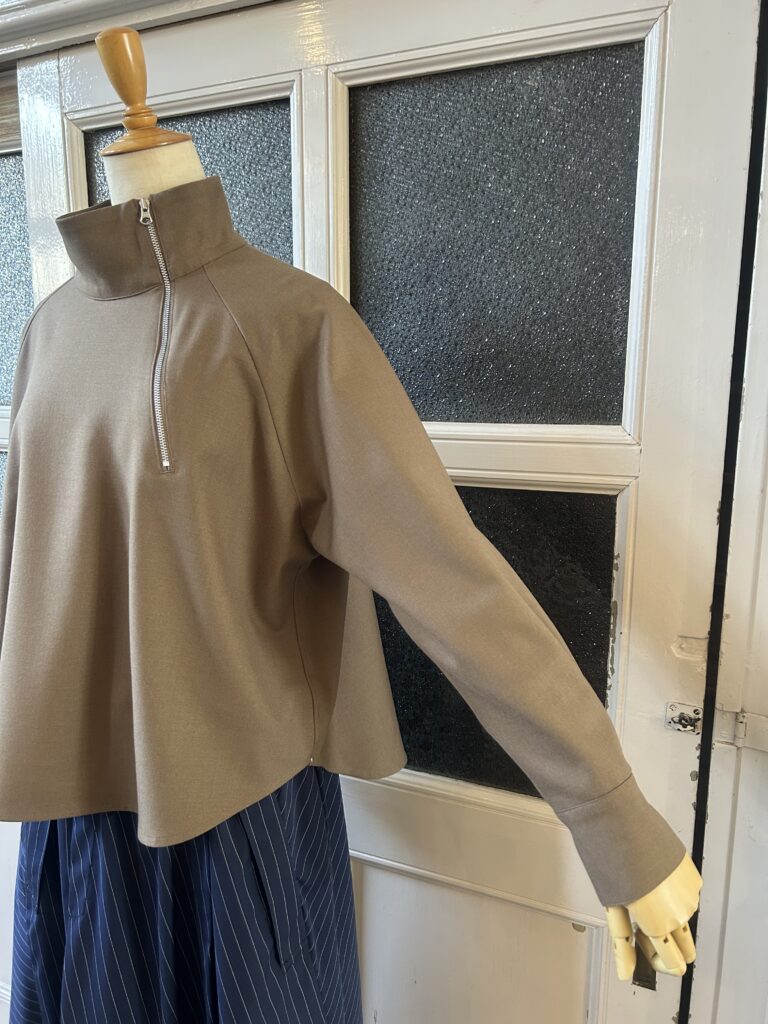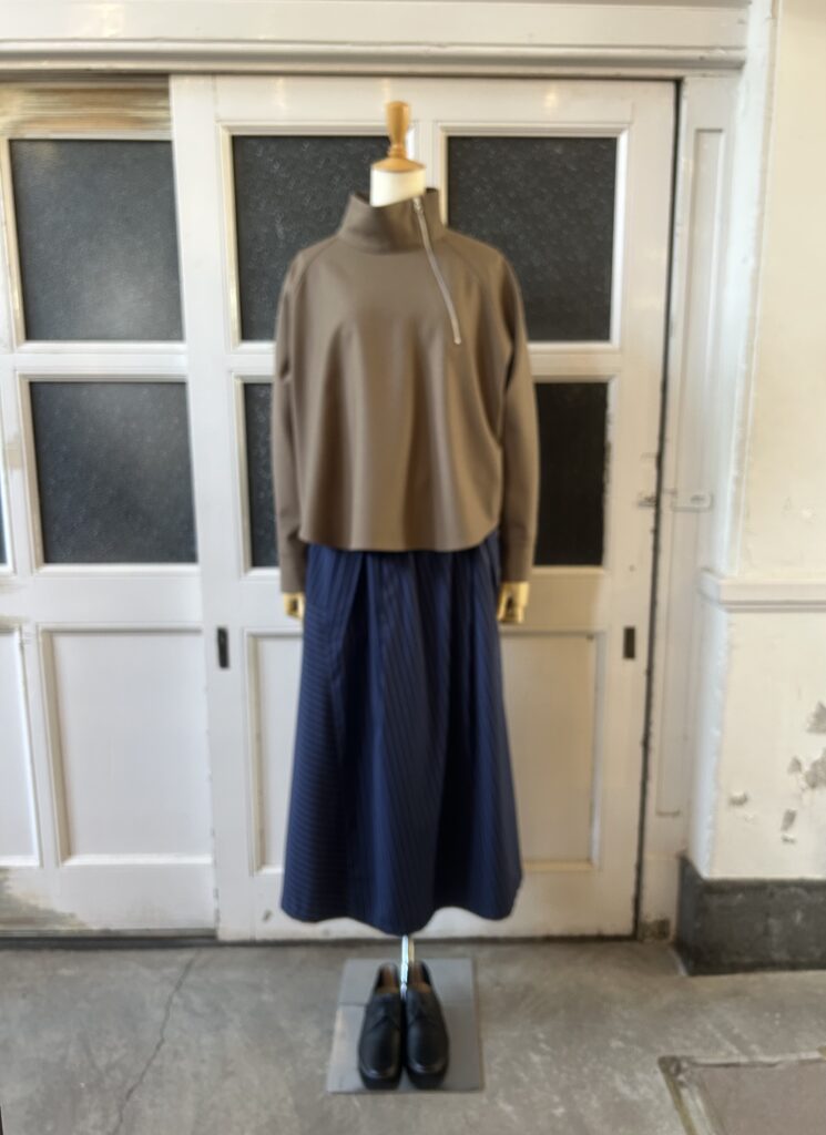 織り目が見える程度少し毛羽を持たせ、暖かみのあるタッチに仕上げたアシメントリーハーフZIPプルオーバー!