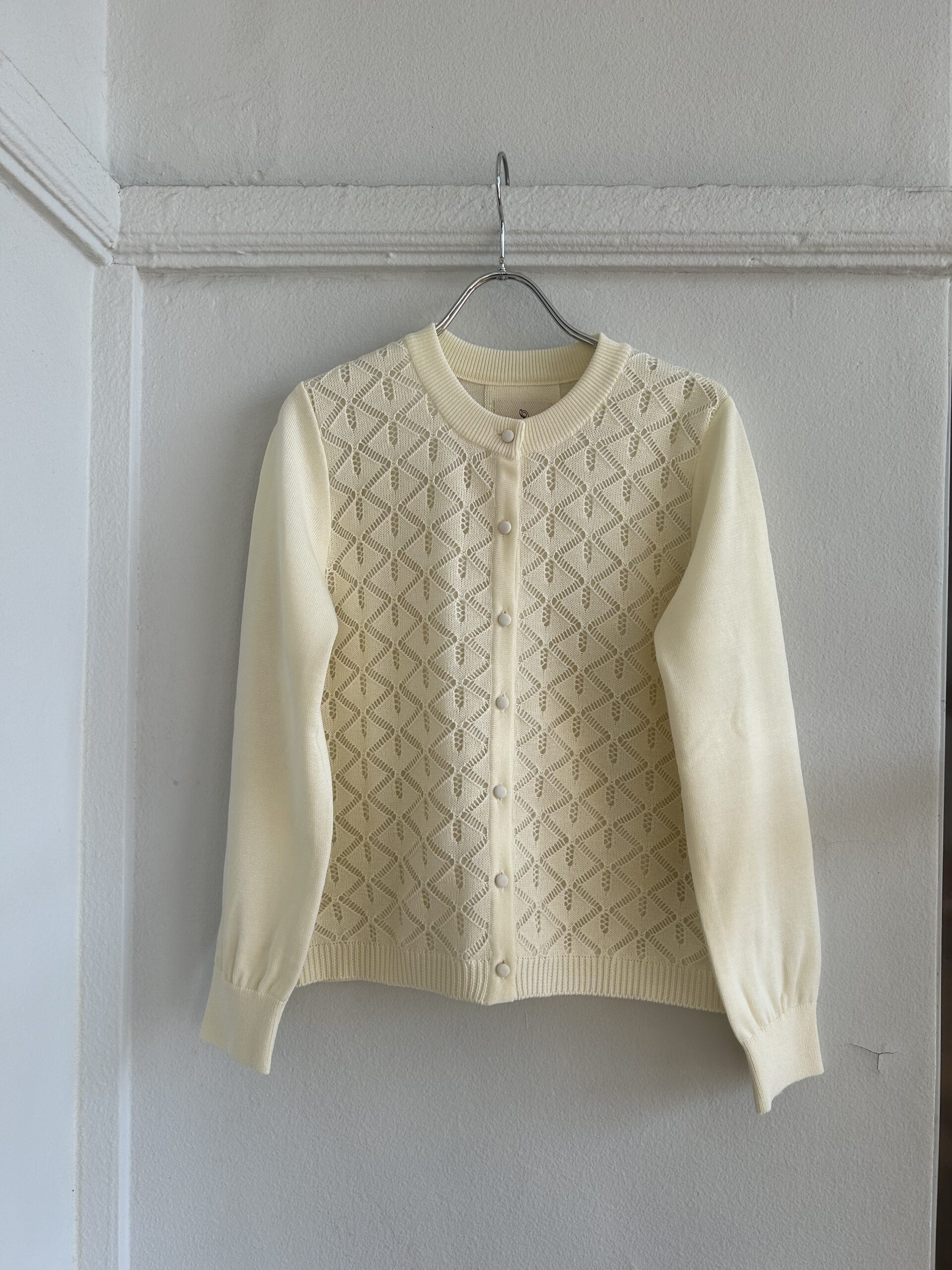 January 17, 2026 porter des boutons 透かし編みバックスリットカーディガン ♯cardigan さらりと軽い着心地のコットンアクリルニットを使用した透かし編みが上品なニットカーディガン! カーディガンprice:¥20,900(¥19,000+tax) 前身頃の透かし編み部分はコットンシフォンと二重仕立て。 ざっくり開いたバックスタイルは、スリットが背中から自然に広がります。 身頃とお袖は身体のラインが出ない程よいゆったり感で裾の締め付けがなく、ボタンを留めてもボトムに被せやすいシルエットです。 GREAT UNKNOWN門司港店 093-321-3811 ramble dance シュリンクレザーフラットシューズ »