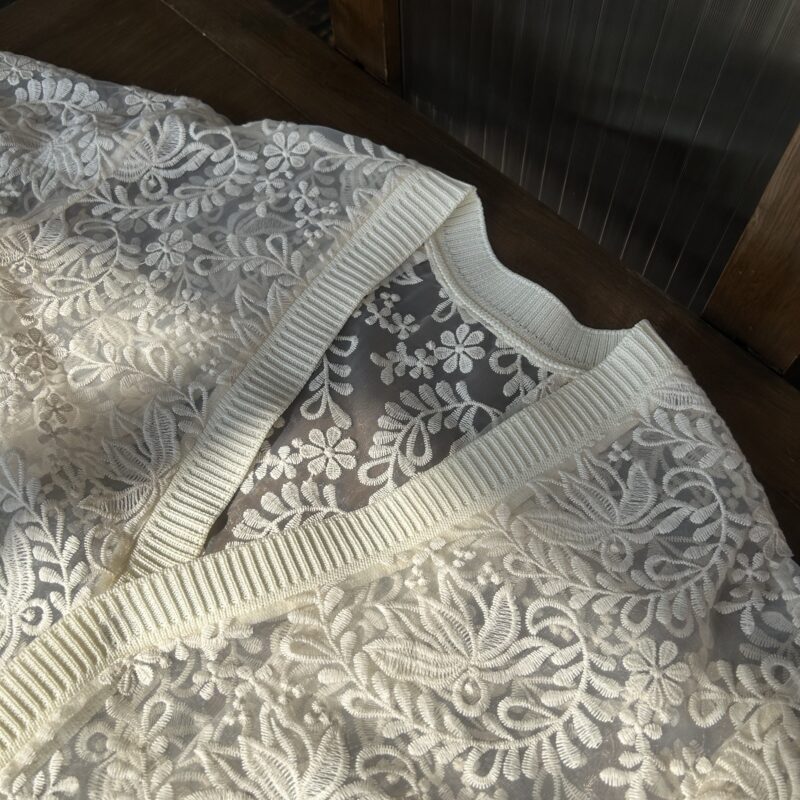 March 16, 2026 SIWALY fluid リブユースレースカーディガン ♯cardigan ニットリブ使いの布帛カーディガン! カーディガンprice:¥26,400(¥24,000+tax) 生成のレース生地は、透け感のあるオーガンジーに施されたコットンの刺繍が目を引きます。襟ぐりから前立て、袖口をリブニットで仕上げ、前開きはくるみスナップの仕様です。 ジャケットシルエットでカットソーのように着用できるきれいめのカーディガン。 GREAT UNKNOWN門司港店 093-321-3811 assiette ナイロンパーカー »