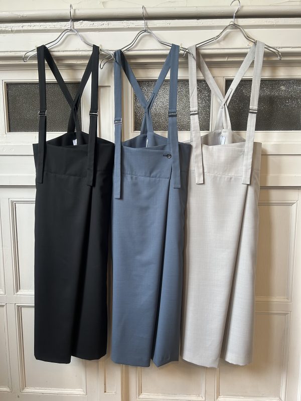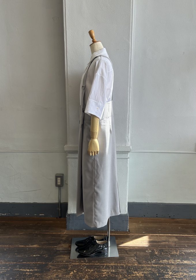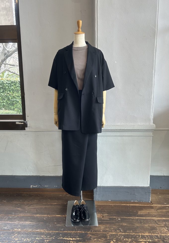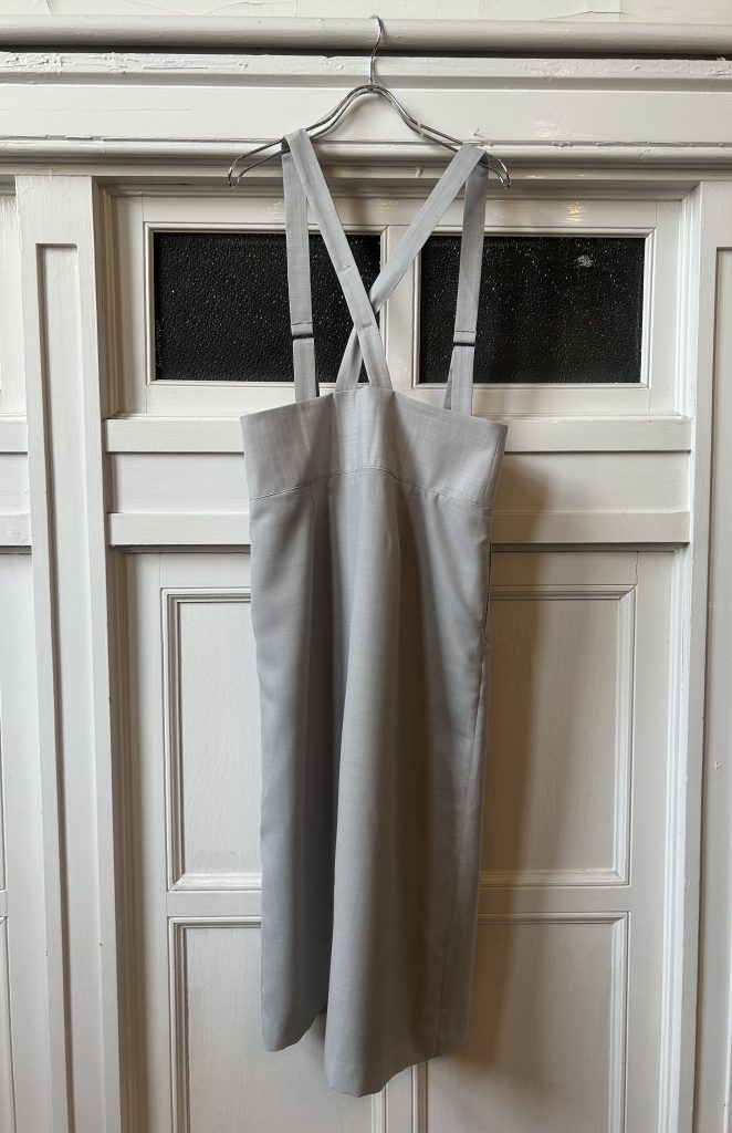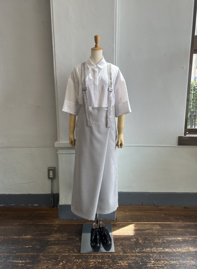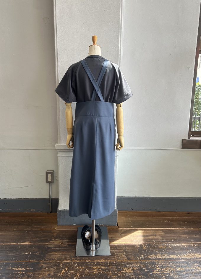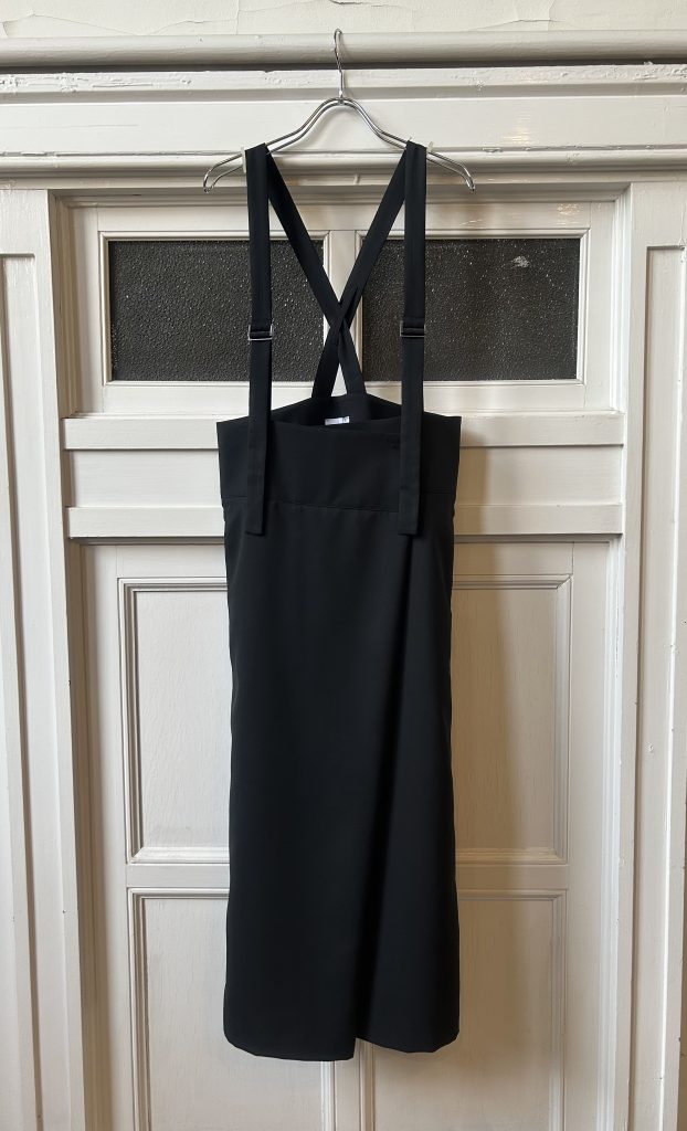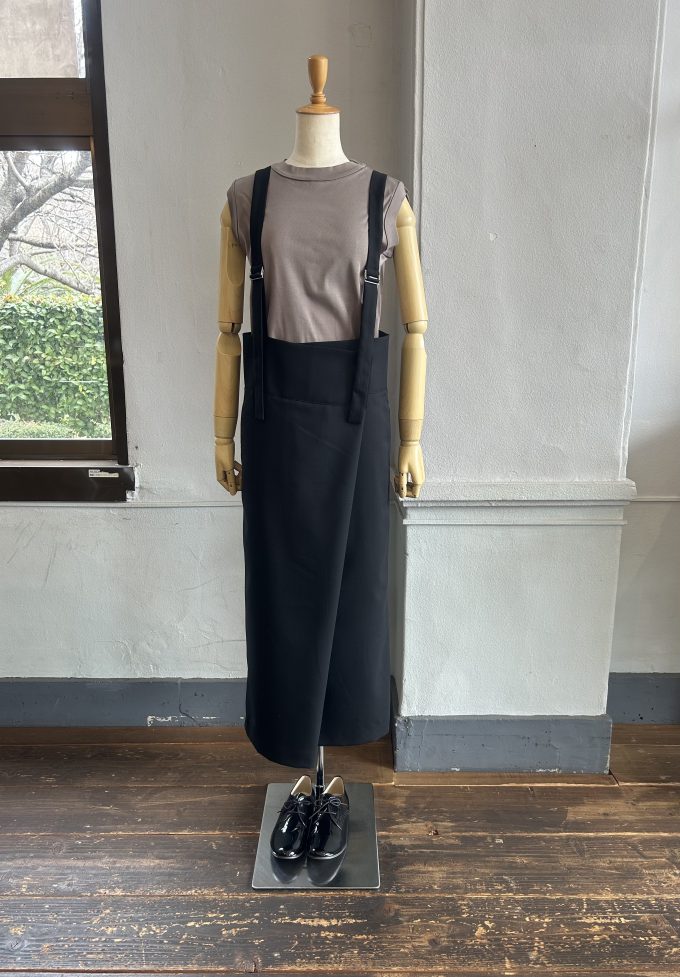 軽く透け感のあるサマーウール、ポリエステルのツイル素材のサスペンダーベルト付きのハイウエストスカート! トップスをインした時にもたつかない大きめのウエストサイズ(84cm)、着丈はアジャスターで調整可能で総裏付きでオールシーズン使いやすい肉感です。 同素材のジャケットとのセットアップ(ブラックのみセットアップ可)で夏のオケージョン使用にもオススメです♪