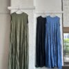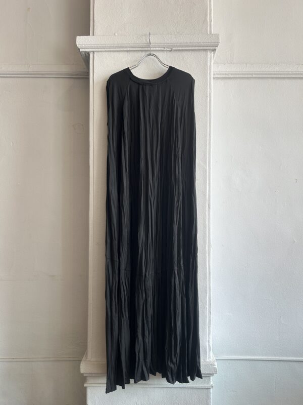 クラッシュプリーツを施し、カジュアルライクでありながらもランダムな立体感を作り出し、裾にかけてたっぷりボリューミーなシルエットが女性らしい一着。
