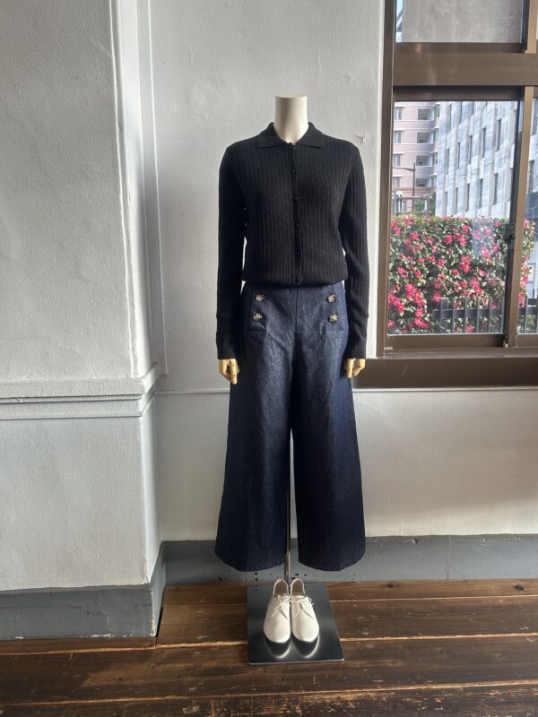 カーディガンとしての着用はもちろん、フロントの釦を留めてプルオーバーとしても着用でき、ボリュームのあるボトムスとも相性良く、幅広くコーディネートが楽しめるアイテムです。