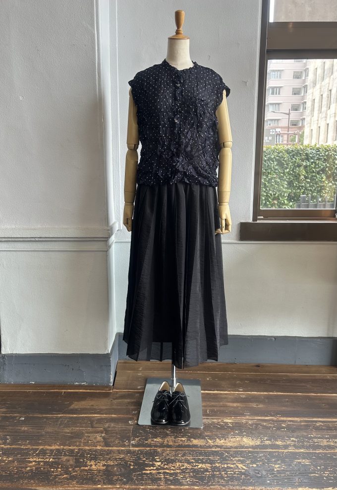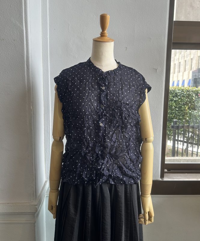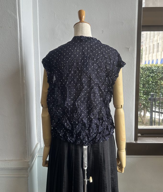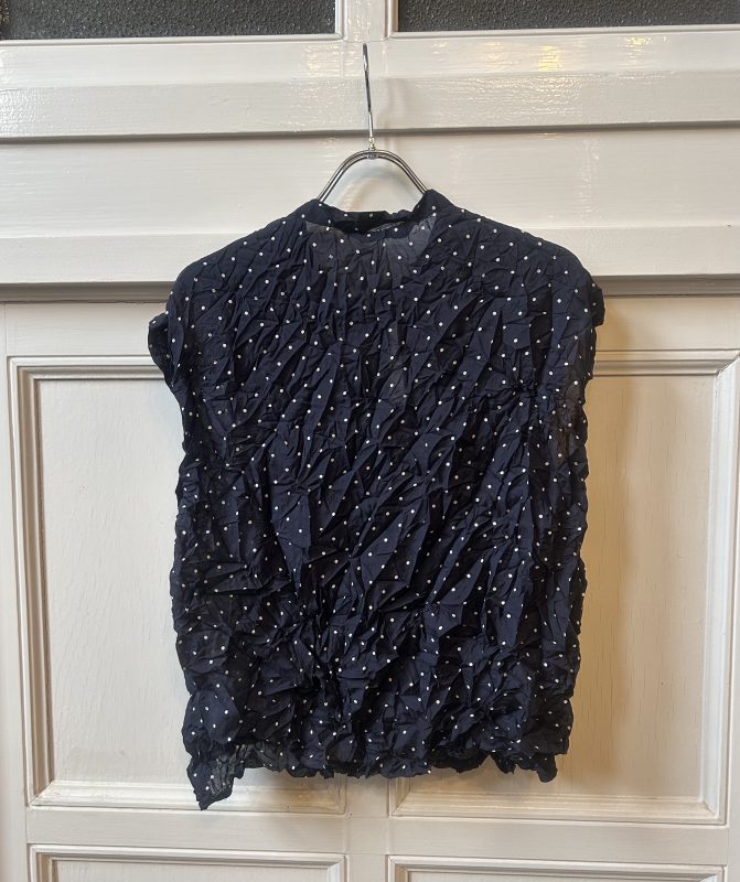 適度な光沢感とソフトで天然ライクな薄手素材を使用したドットプリントキャッチワッシャーノースリーブシャツ!人気のドット柄をワッシャー加工を施した雰囲気のある1枚。オケージョン対応も可能。 コンパクトサイズでスッキリと着こなしていただけます。