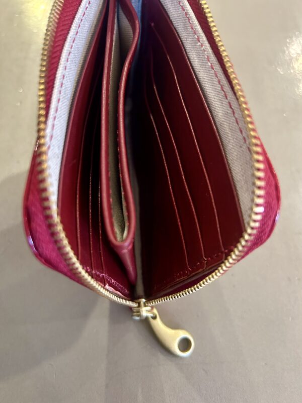 牛革エナメル加工のLジップショートウォレットです! カードポケット6個、オープンポケット2個、コインポケット1個を装備しています。