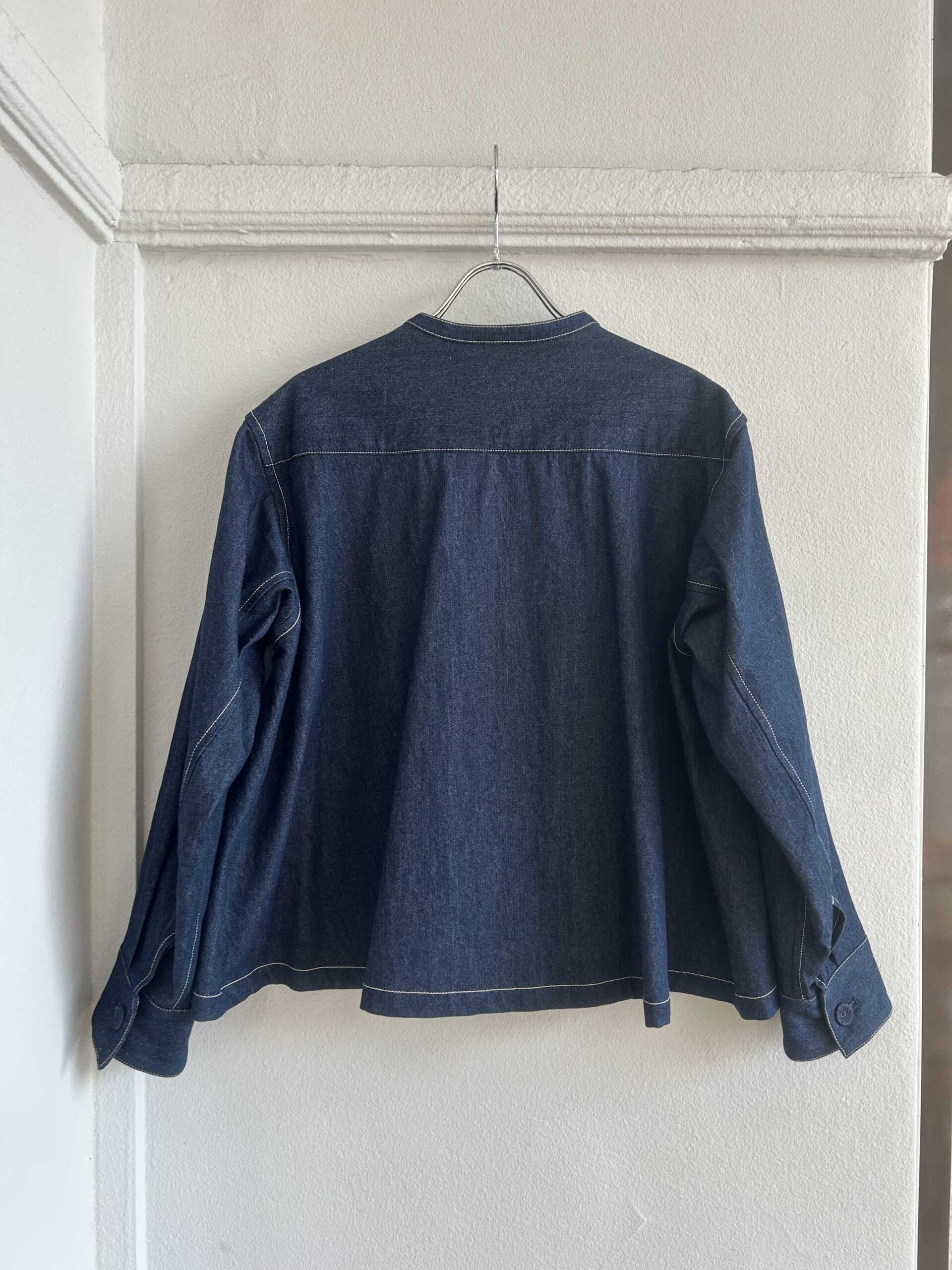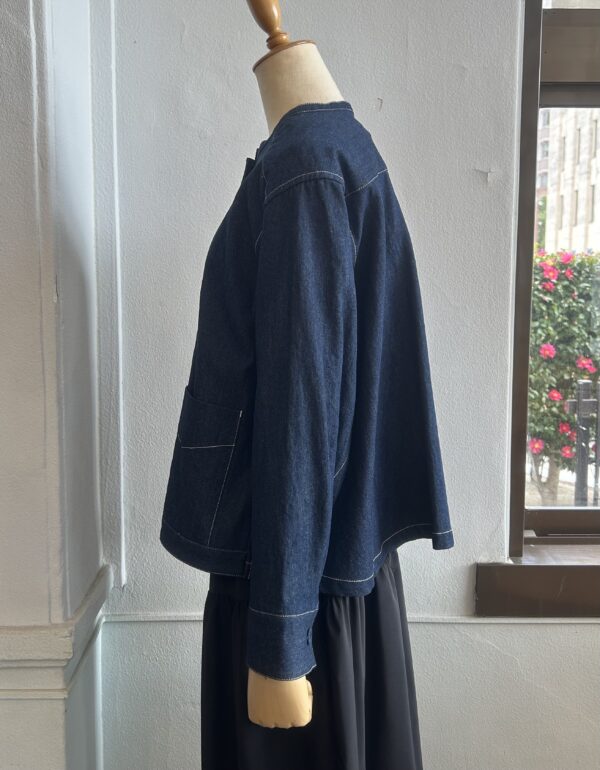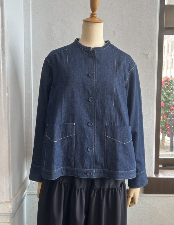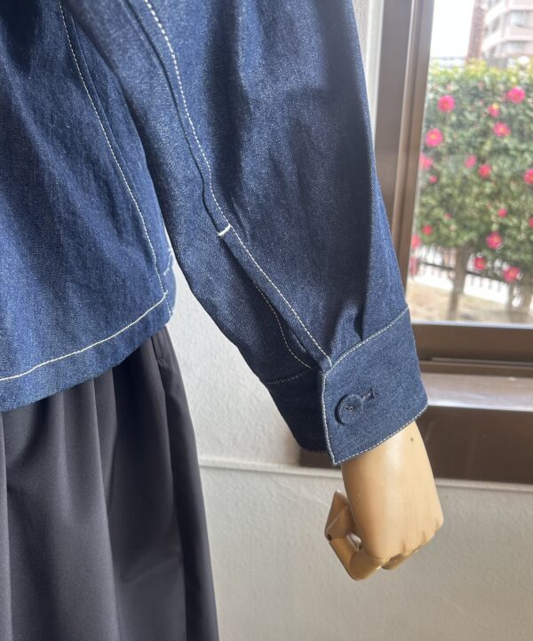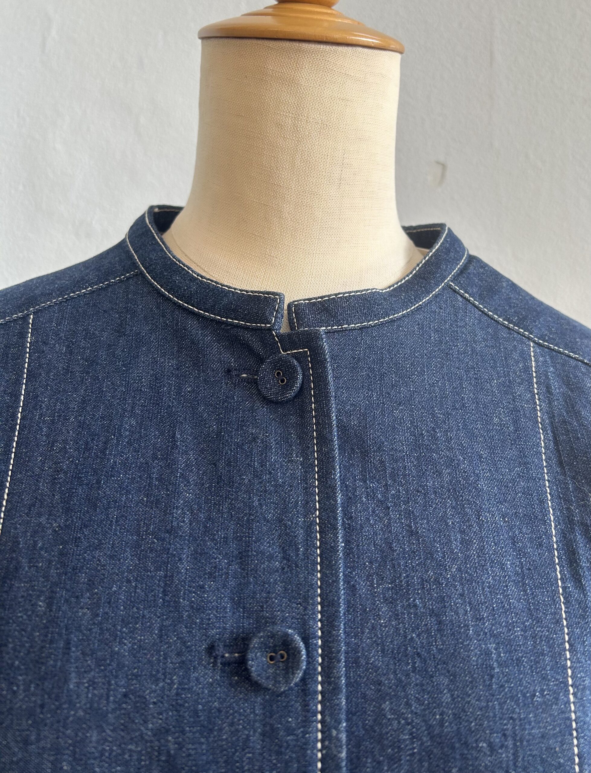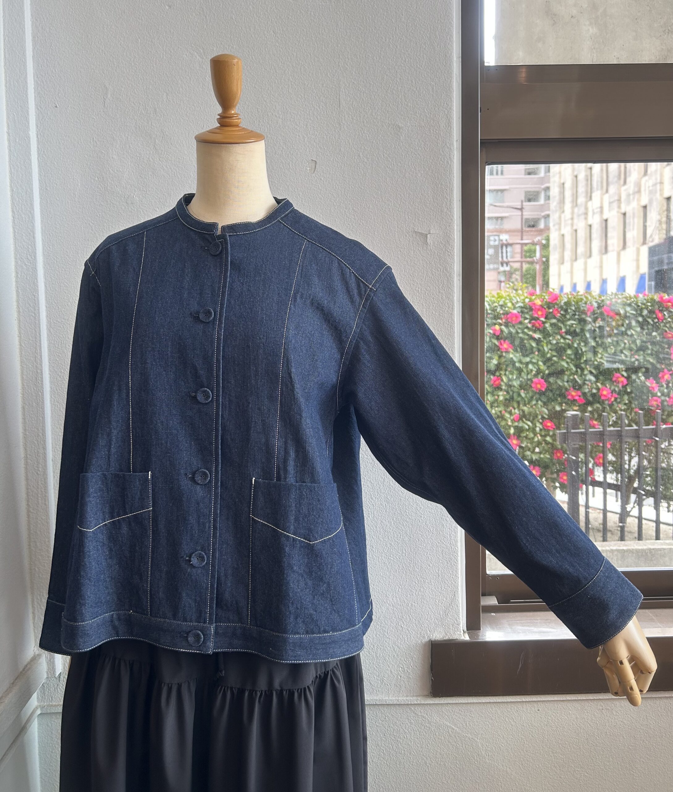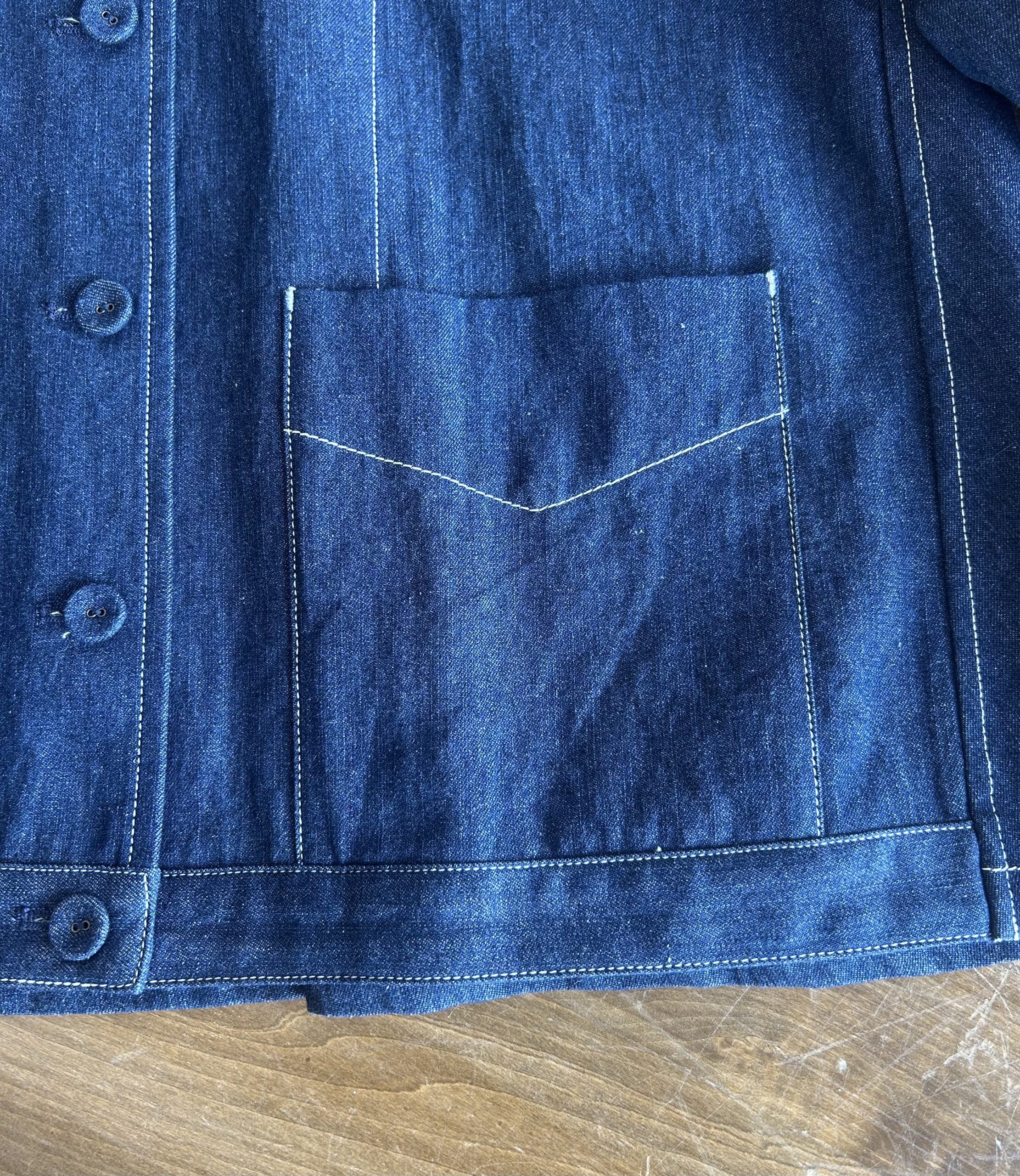 軽やかなリネン混デニムでお作りしたデニムジャケット! インディゴにホワイトステッチを効かせました。
