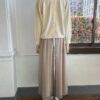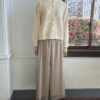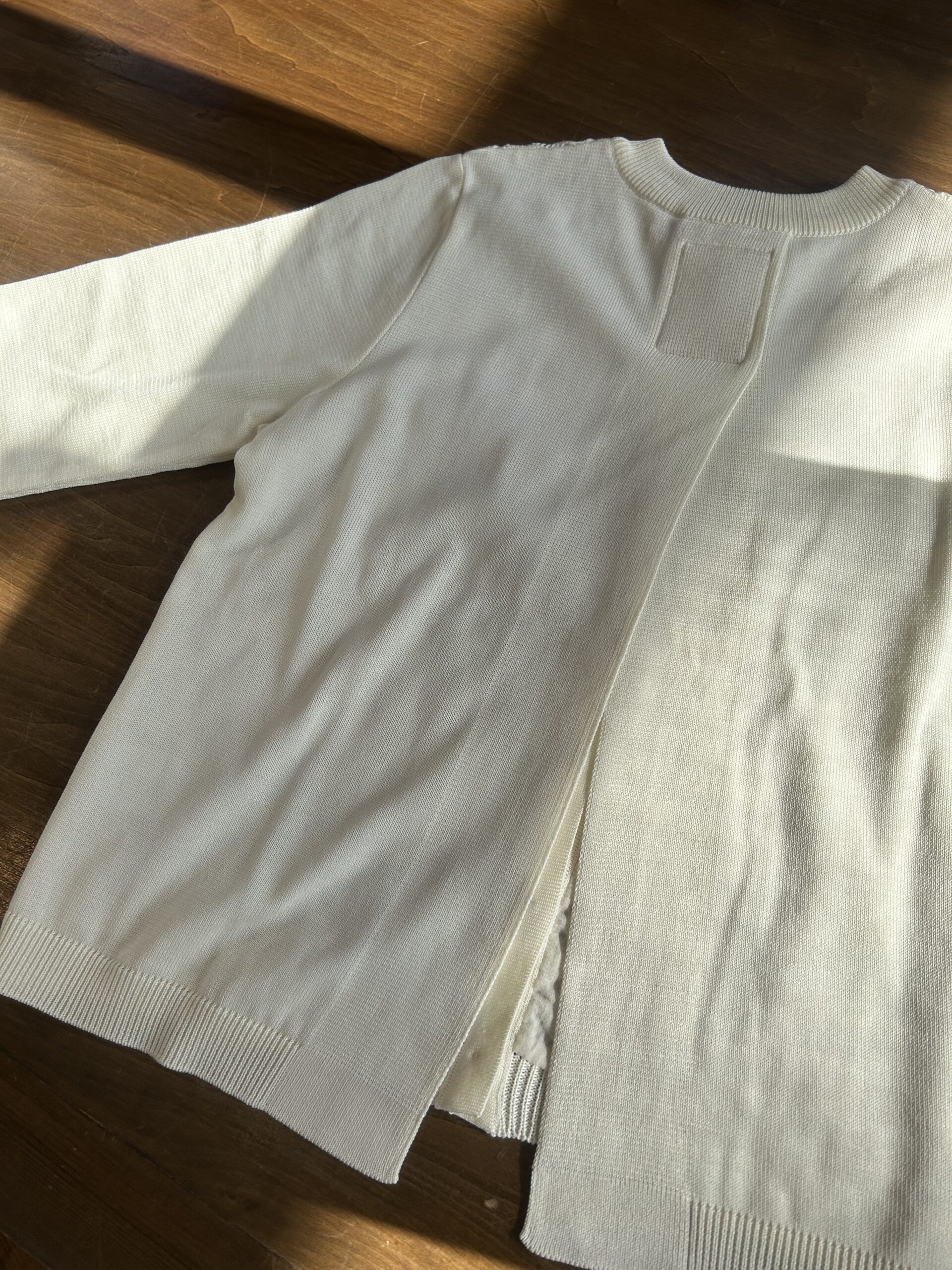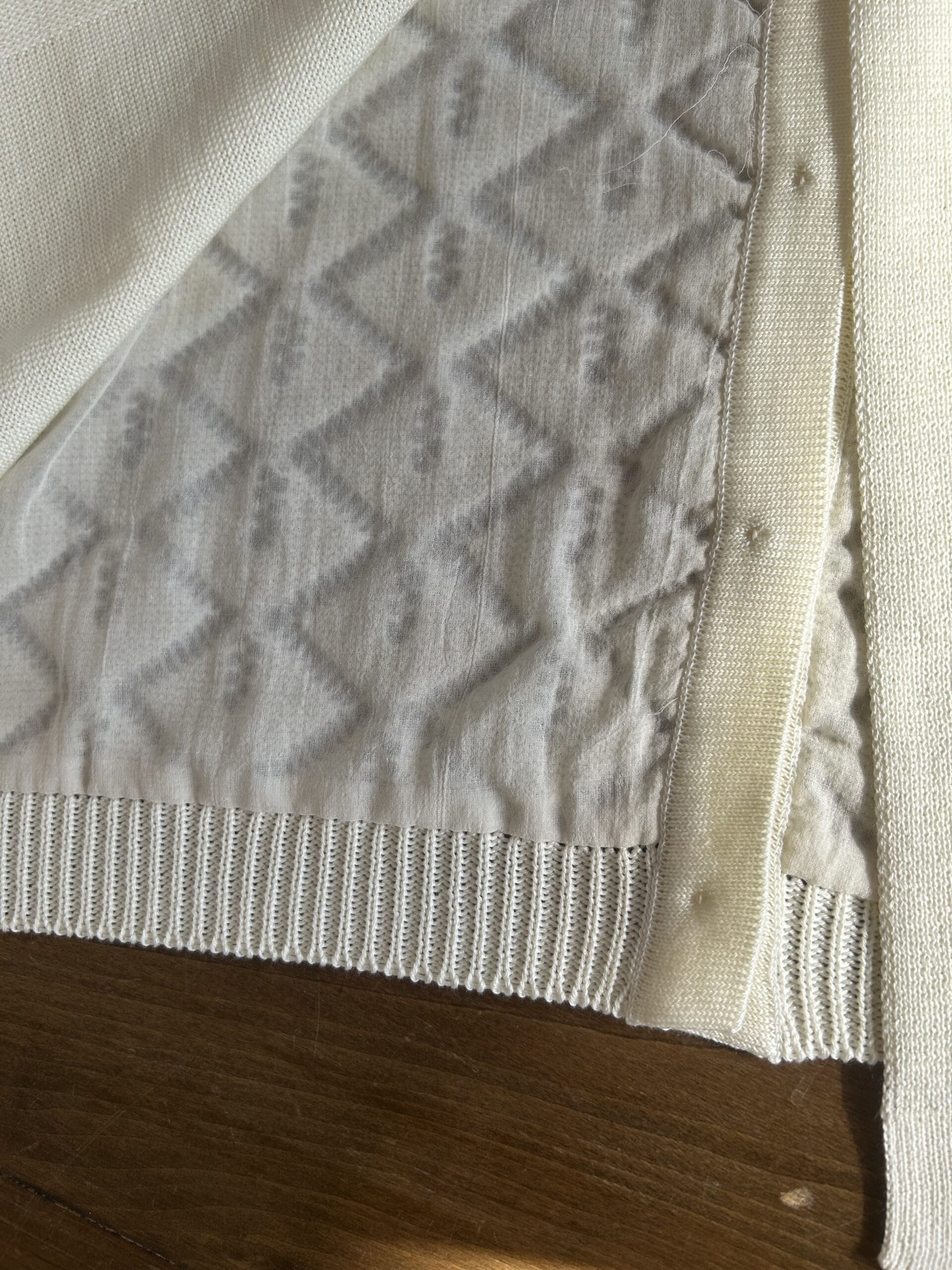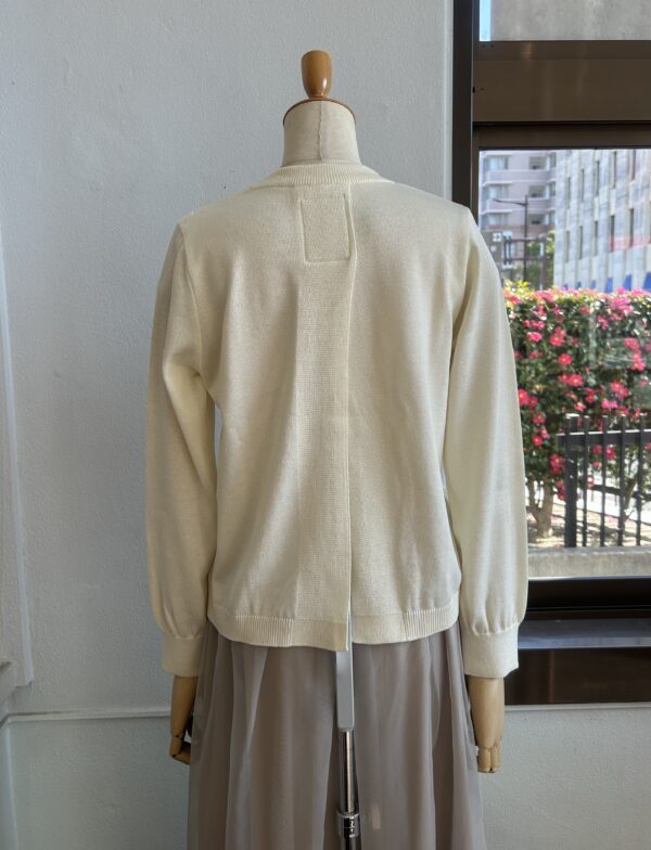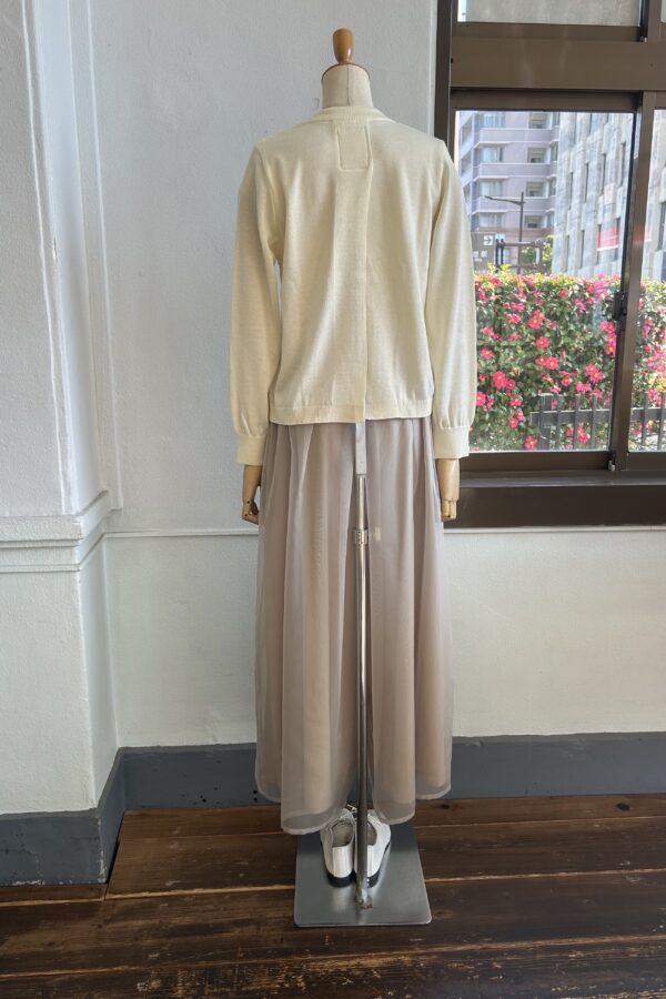 前身頃の透かし編み部分はコットンシフォンと二重仕立て。 ざっくり開いたバックスタイルは、スリットが背中から自然に広がります。