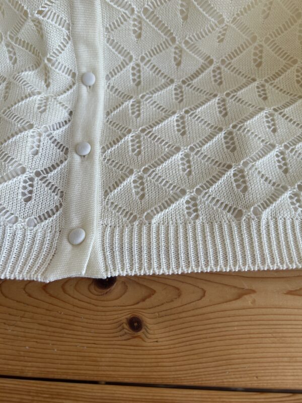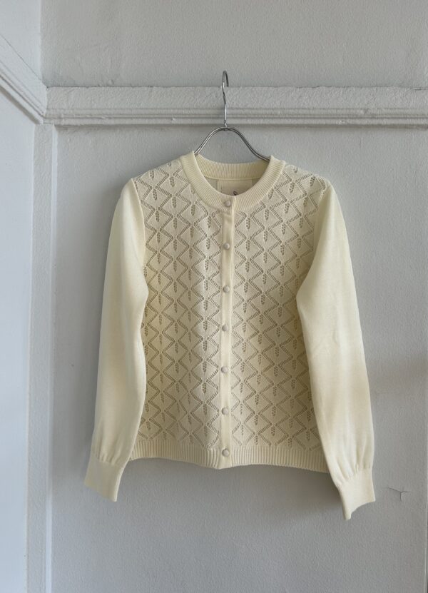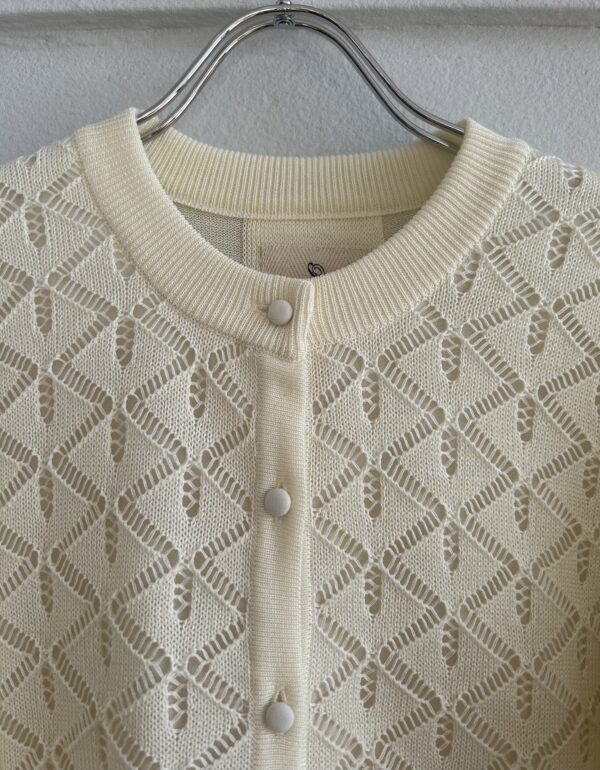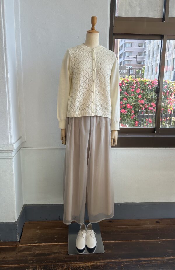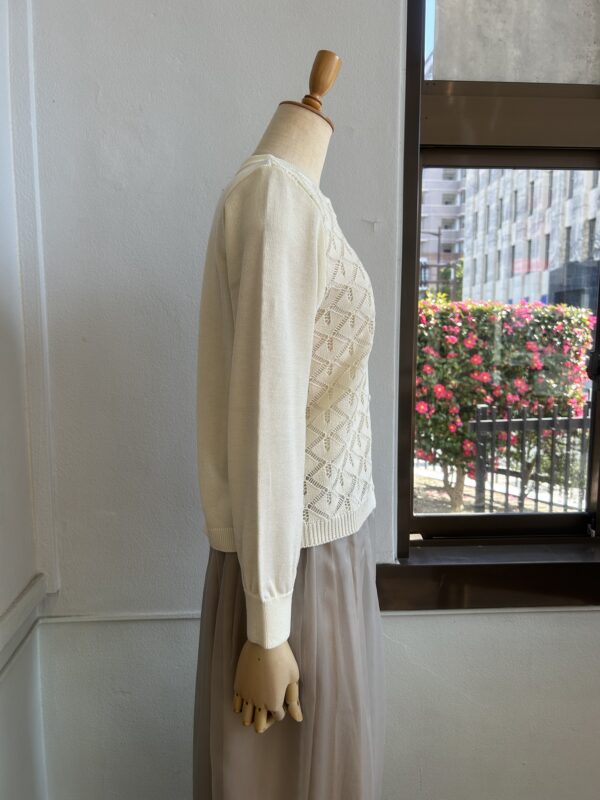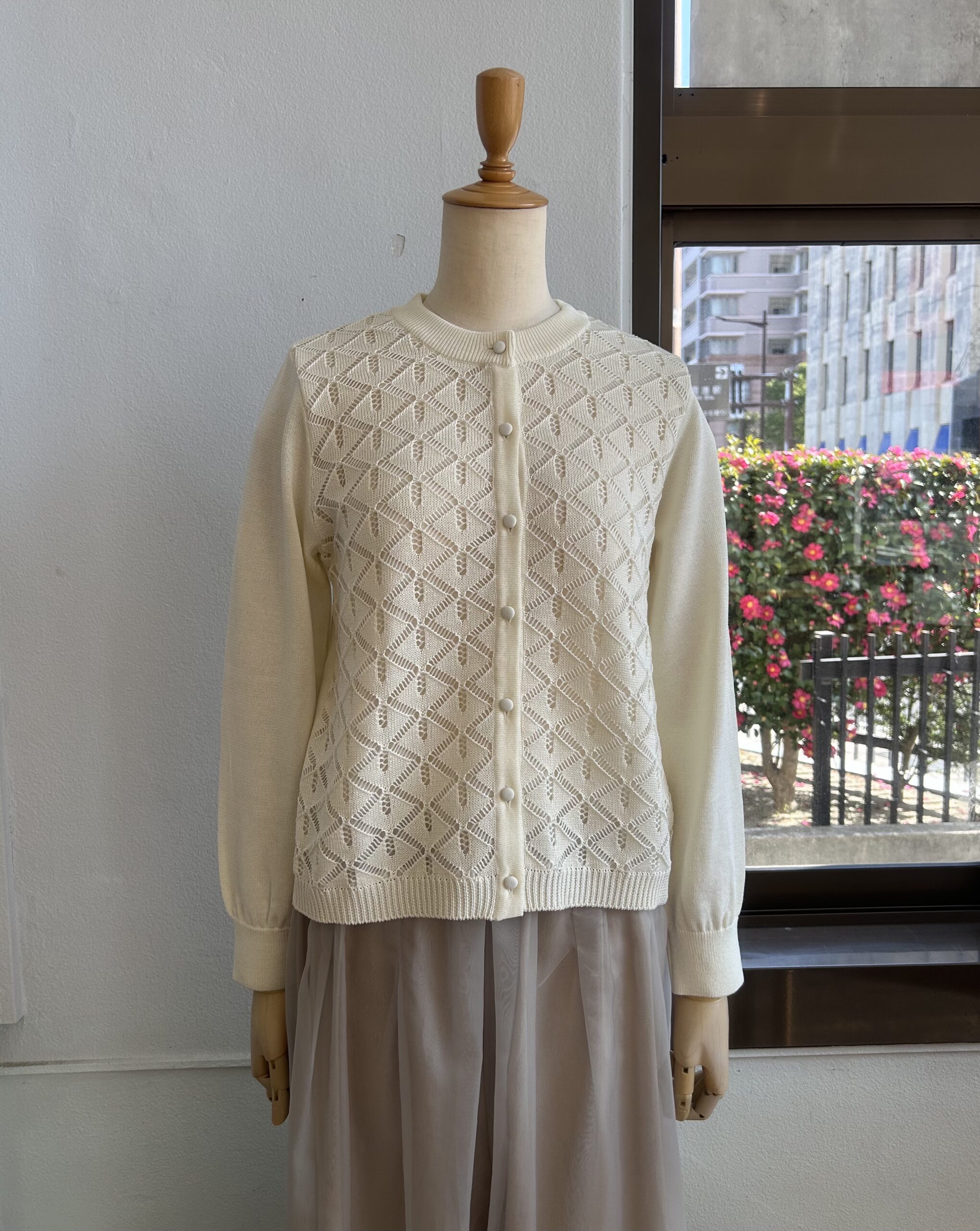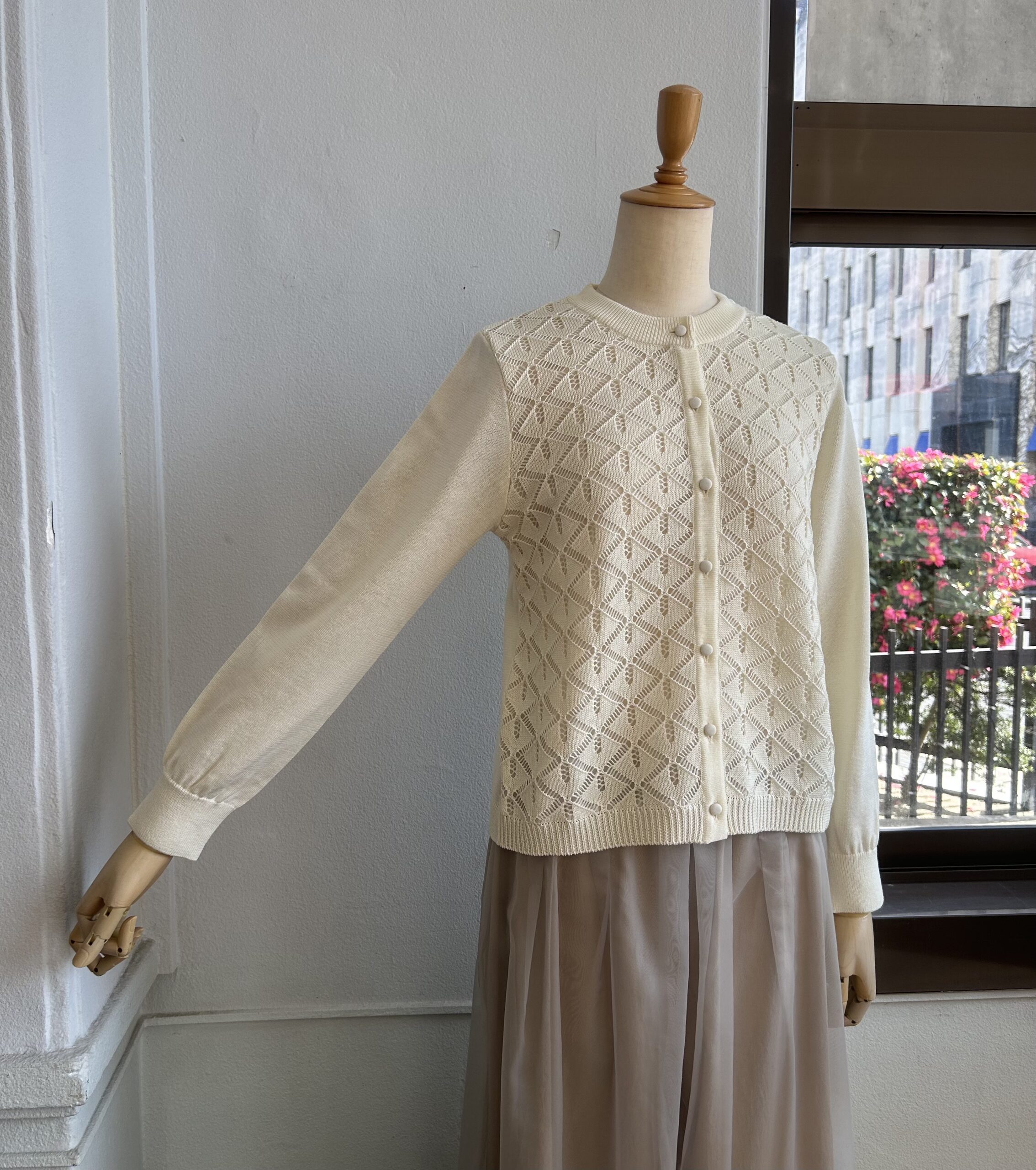 さらりと軽い着心地のコットンアクリルニットを使用した透かし編みが上品なニットカーディガン!