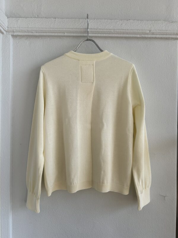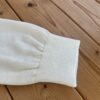 身頃とお袖は身体のラインが出ない程よいゆったり感で裾の締め付けがなく、ボタンを留めてもボトムに被せやすいシルエットです。