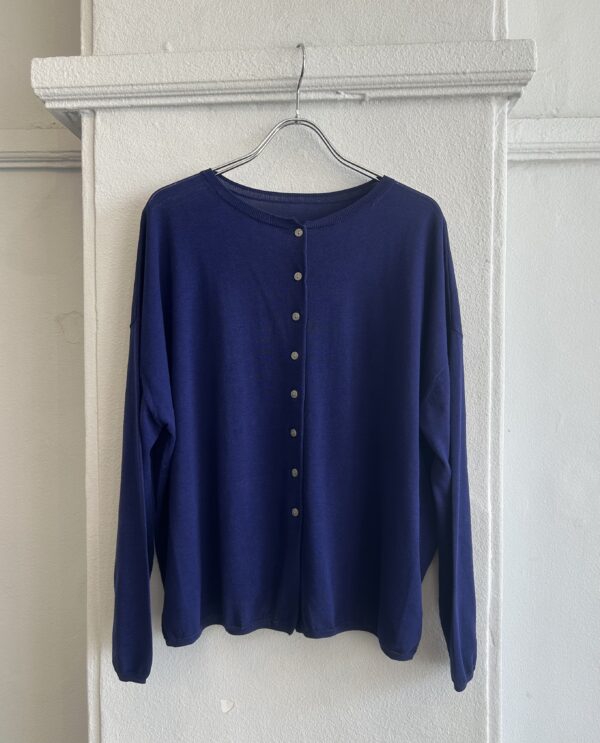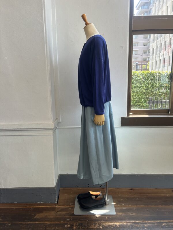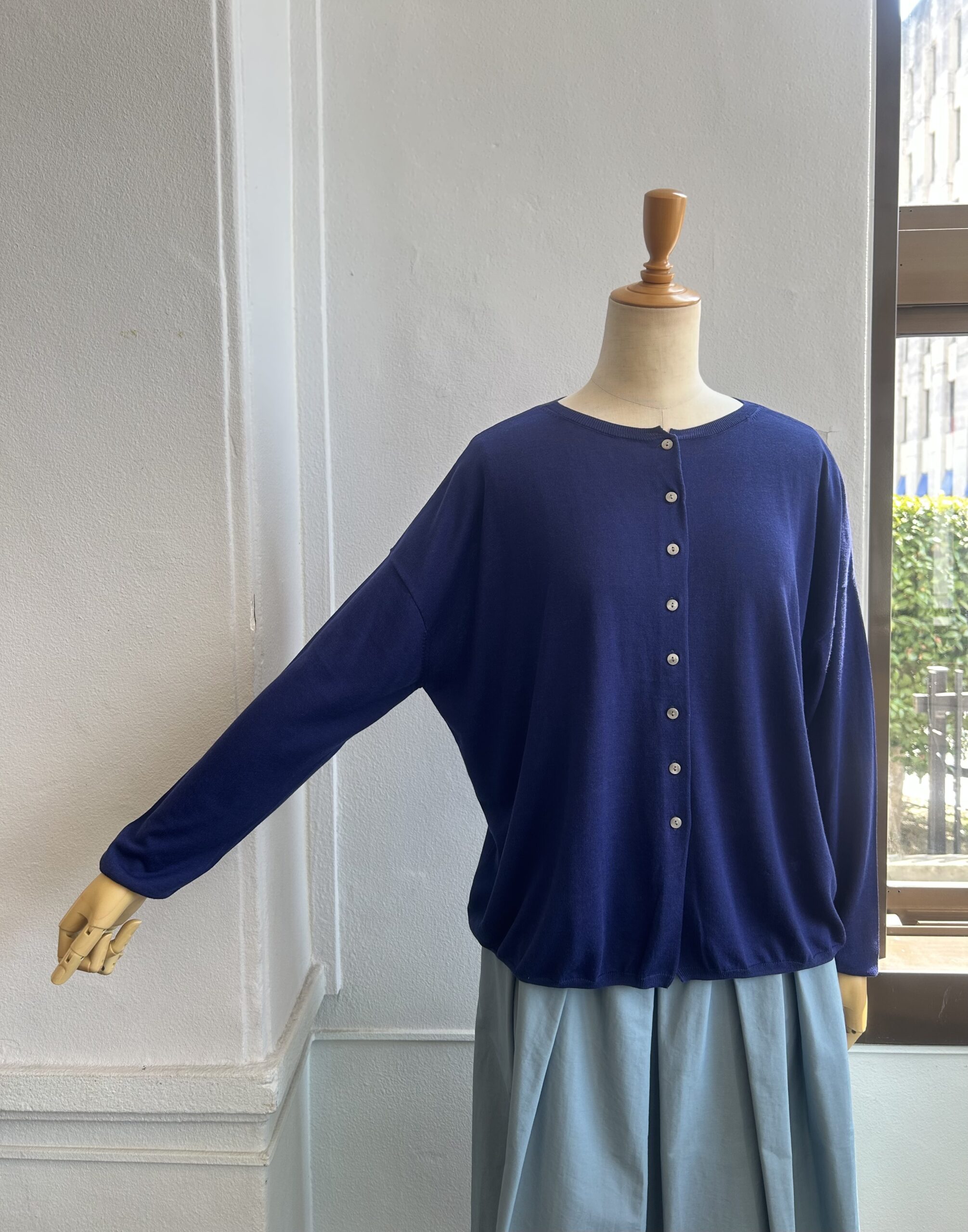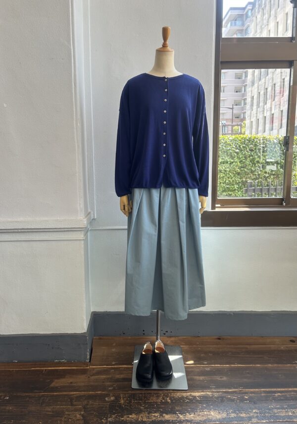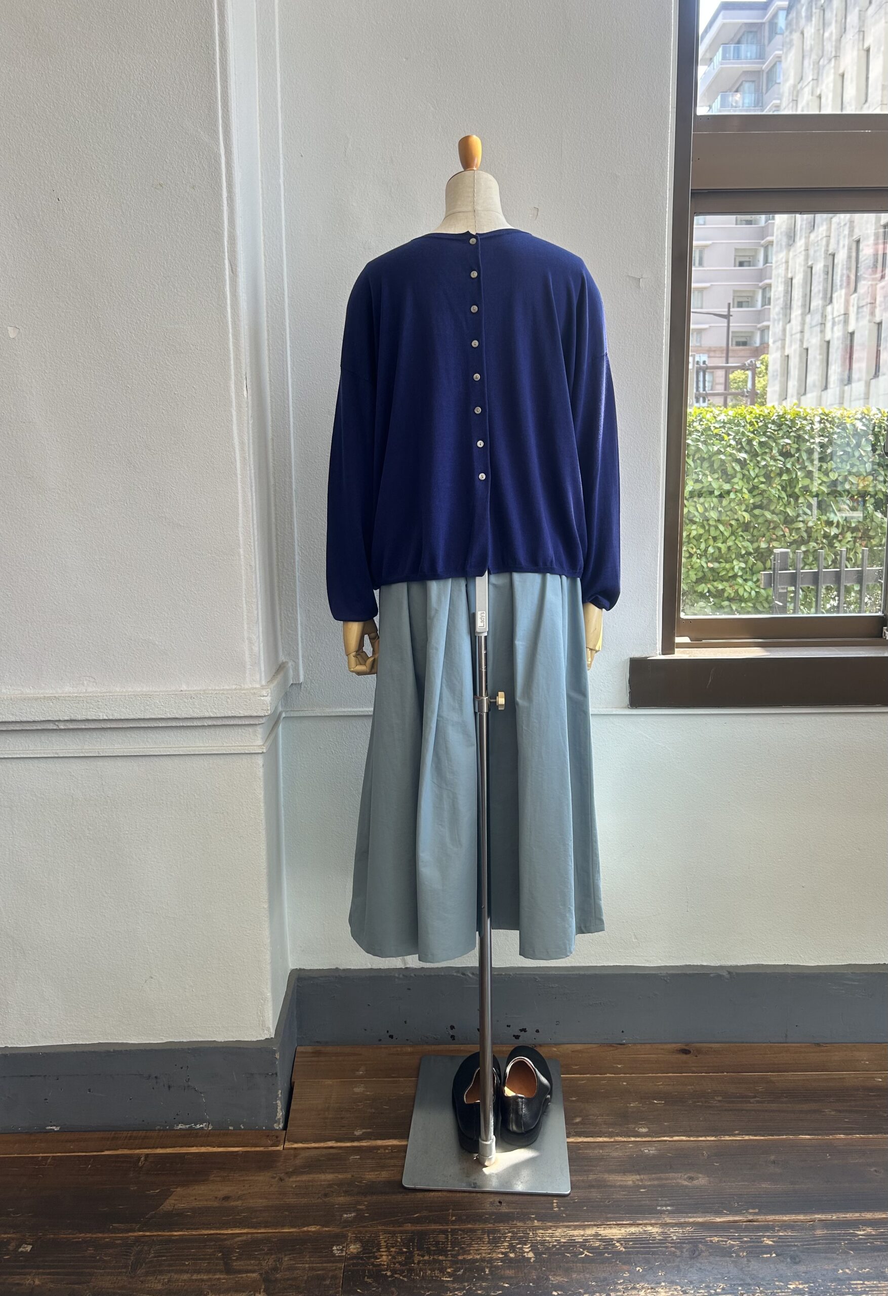 カーディガンとしても、ボタンをすべて留めて背中側にまわせばワイドシルエットのプルオーバーとしても着られる2way仕様です。