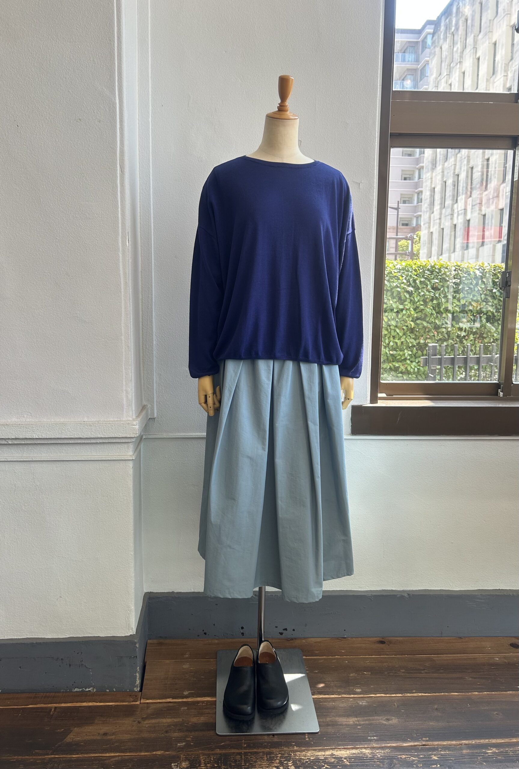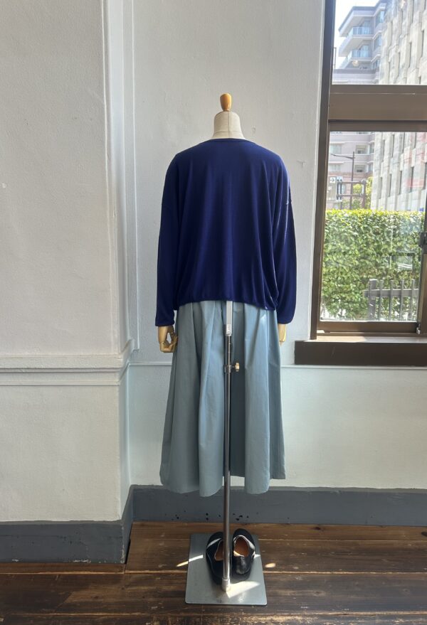 身幅はゆとりをもたせているけれど袖は肩を落としたオフショルダー、袖幅はすっきりとしていて、このバランスが絶妙!