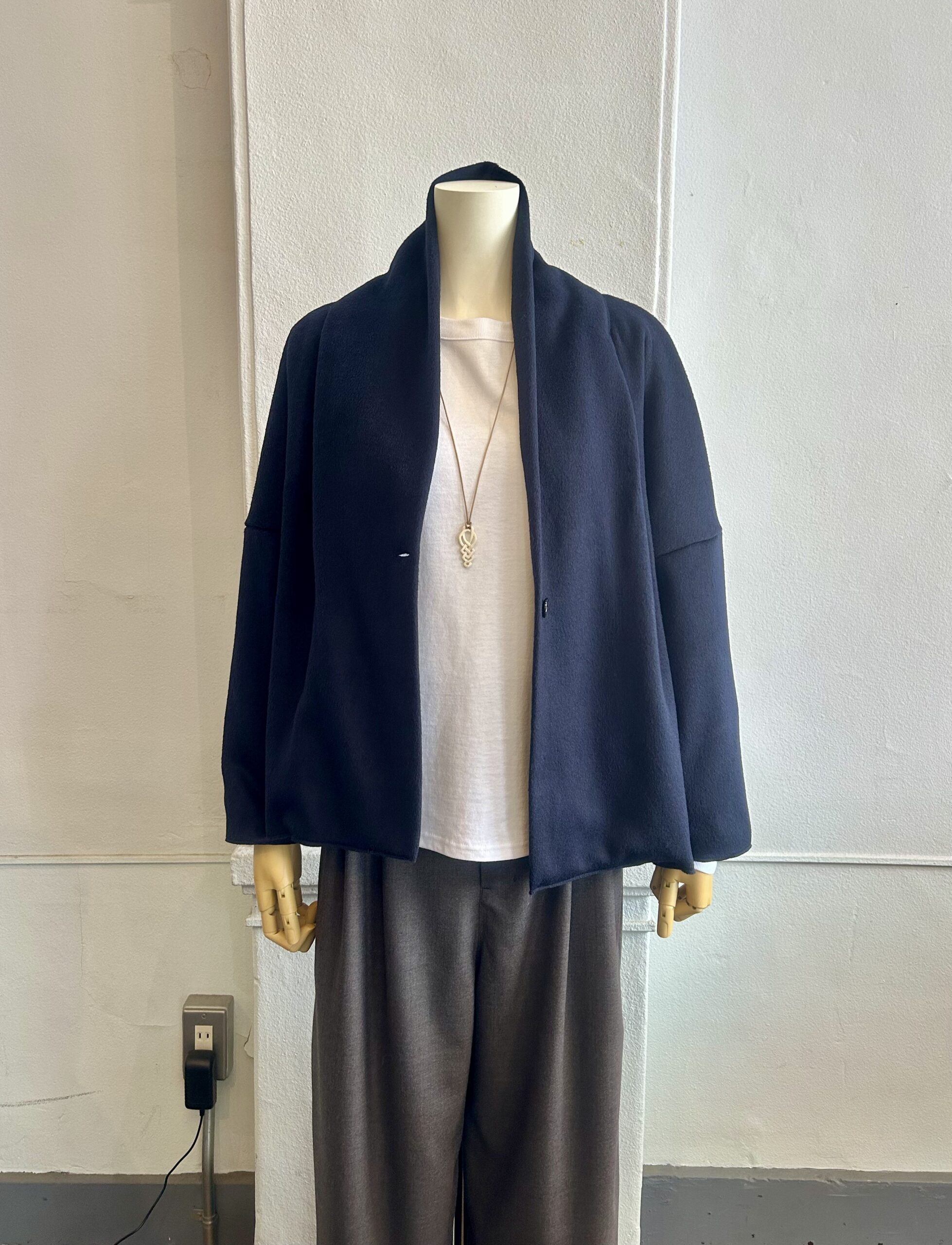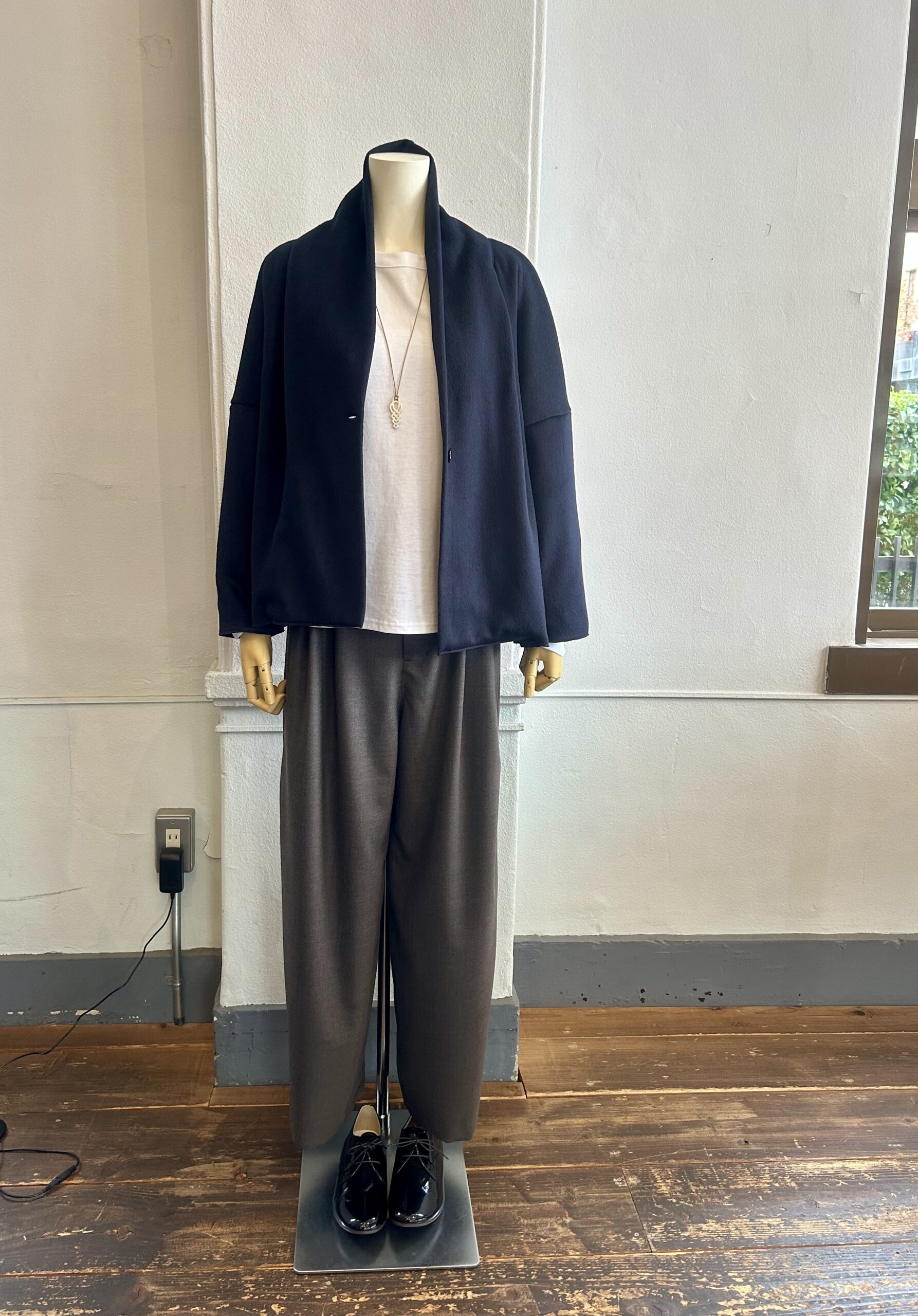 やわらかなぬくもりを纏いながら、季節の移ろいを心地よく過ごせるローブジャケットです。