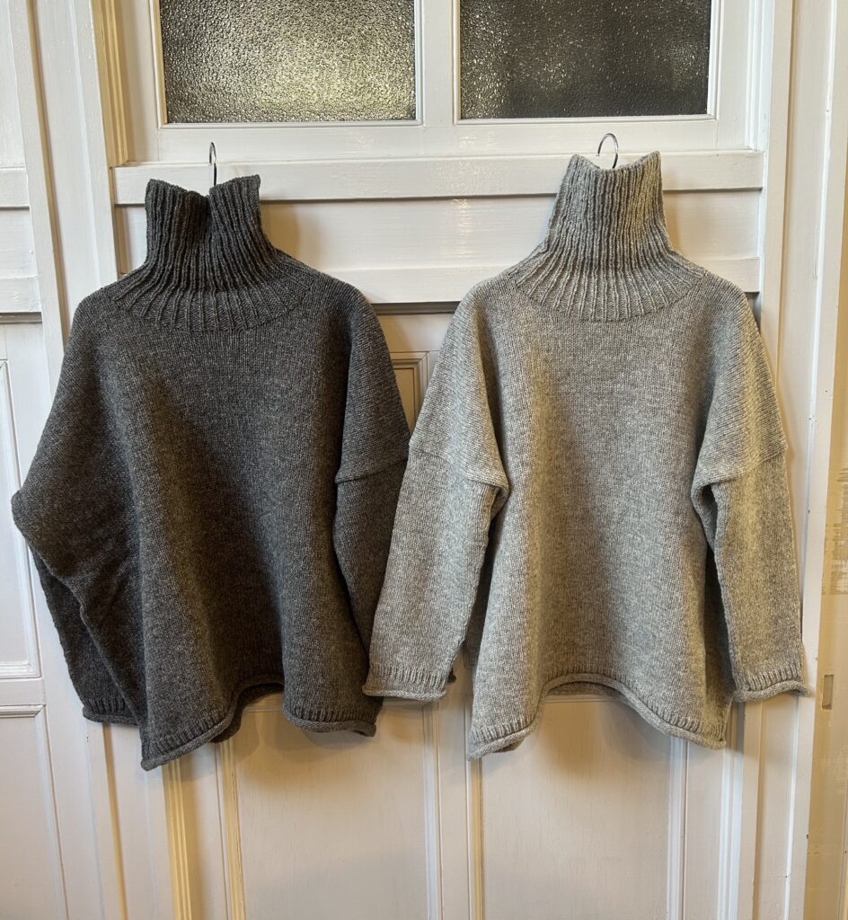 ふわふわとした柔らかな肌触り、毛足のあるウール混の糸を使用したバルキーニット‼️